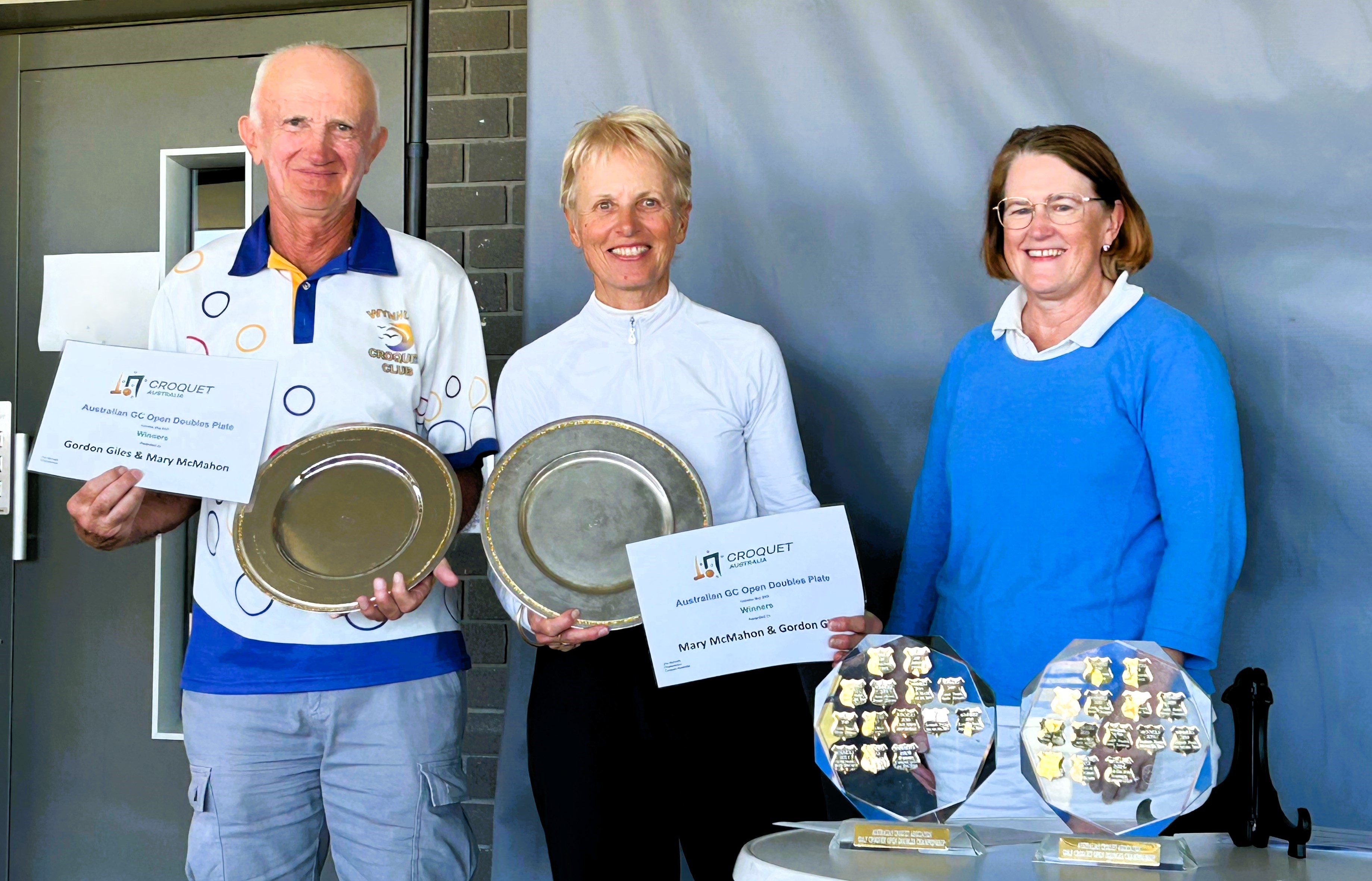Plater winners: Gordon Giles (Wynnum Qld) Mary McMahon (Southport Qld)
